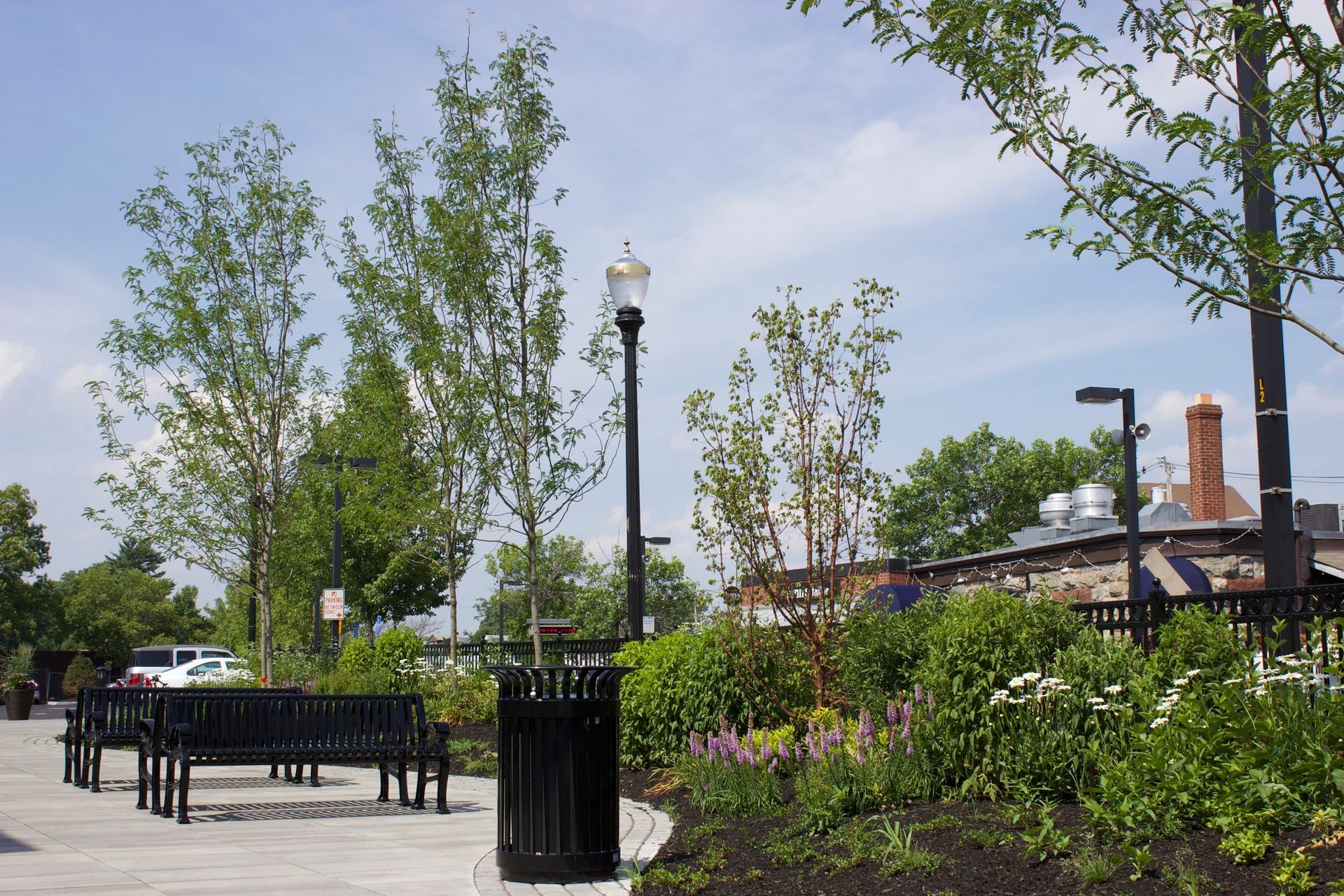 WDA Design Group has recently placed a great deal of focus on the redevelopment and repurposing of underutilized and abandoned urban sites. Eaton Square in Needham, MA is an outstanding example of how our design team is able to breathe new life into neglected urban landscapes. Working with KBA Architects and Needham Bank, WDA carved a pedestrian plaza out of a formerly paved and unused right-of-way between the bank and the Needham Center MBTA stop in the center of Town, transforming it into a vibrant community asset that is the new home of Needham's weekly farmer's market.