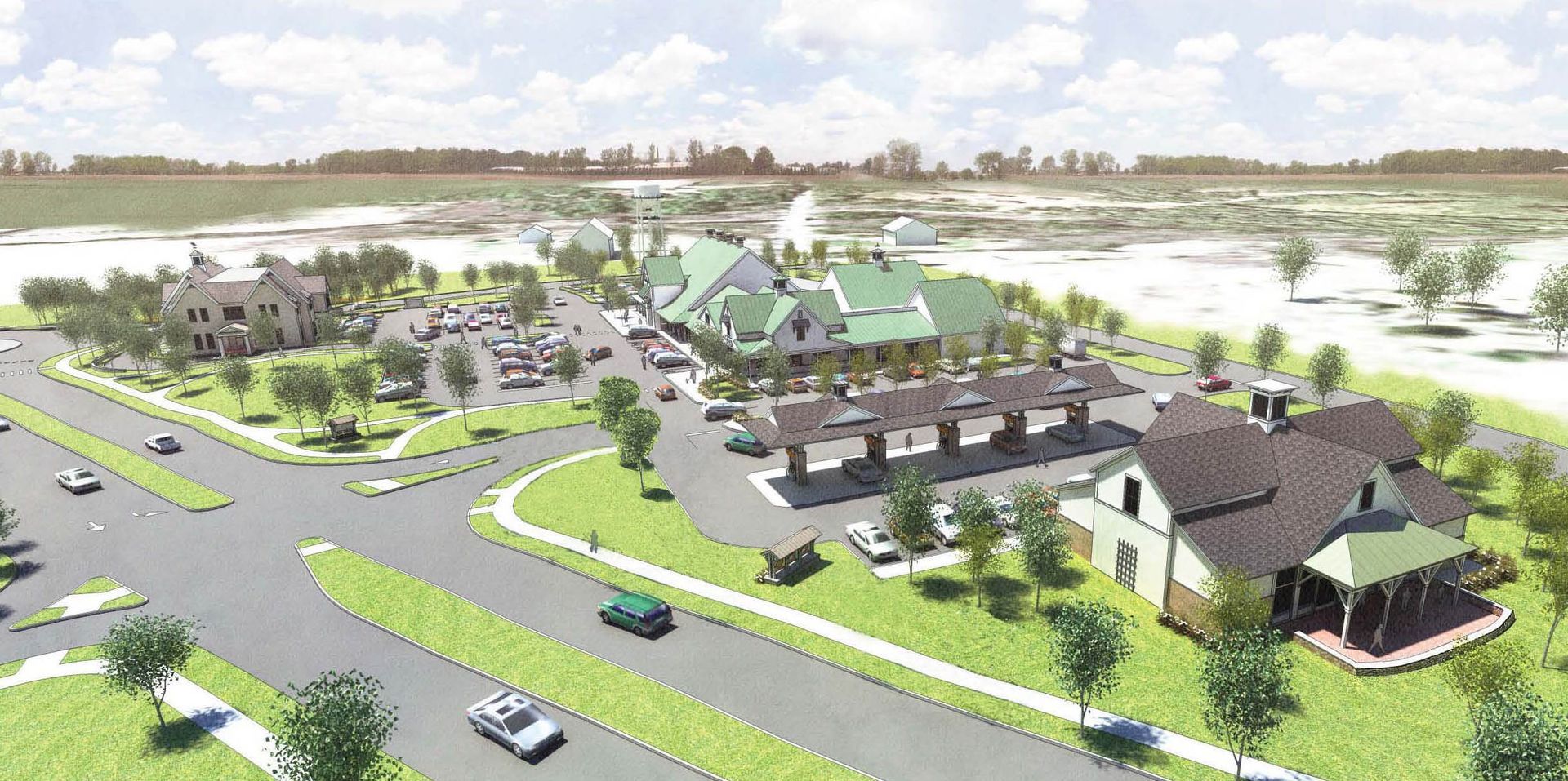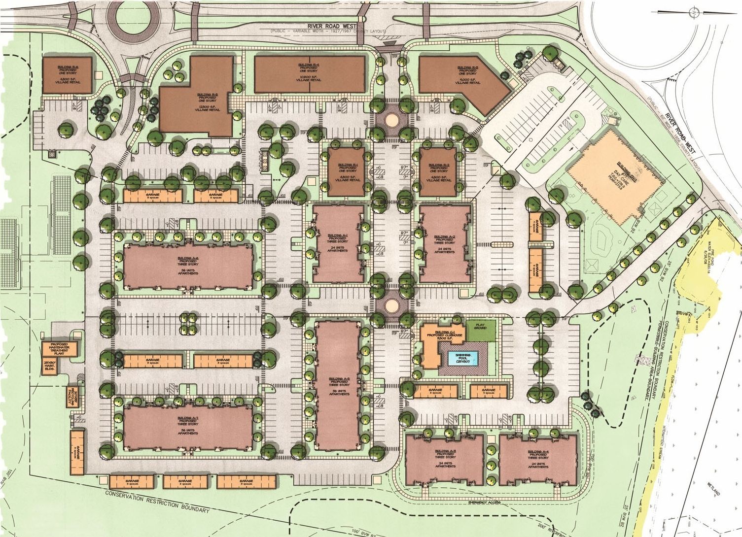 WDA Design Group was engaged by a local land-use attorney and developer to prepare a comprehensive master plan for a neo-traditional, mixed-use village on 130 acres in Berlin, Massachusetts. Working closely with town officials and residents, WDA prepared a master plan which balances conservation and development goals through careful planning and development controls. By providing a dense, concentrated mixture of neighborhood commercial, residential, and continuing care retirement uses, large tracks of open space are preserved. As a result, environmental impacts are minimized and sensitive wetland resource areas and upland areas are preserved for active and passive recreation, while maintaining the rural character of the town of Berlin. The village center is a true mixed-use environment, designed as a pedestrian friendly community. Inherently, the design creates less dependence on vehicular use with greater emphasis on sense of place and community. Shopping, dining, and service opportunities are integrated with residential uses and are located to complement one another to promote social interaction and walkability. Nearby open space amenities include two (2) miles of walking trails, a canoe launch, and a river look-out. A public parking area is also provided to afford access and use of the open space areas by neighboring communities.