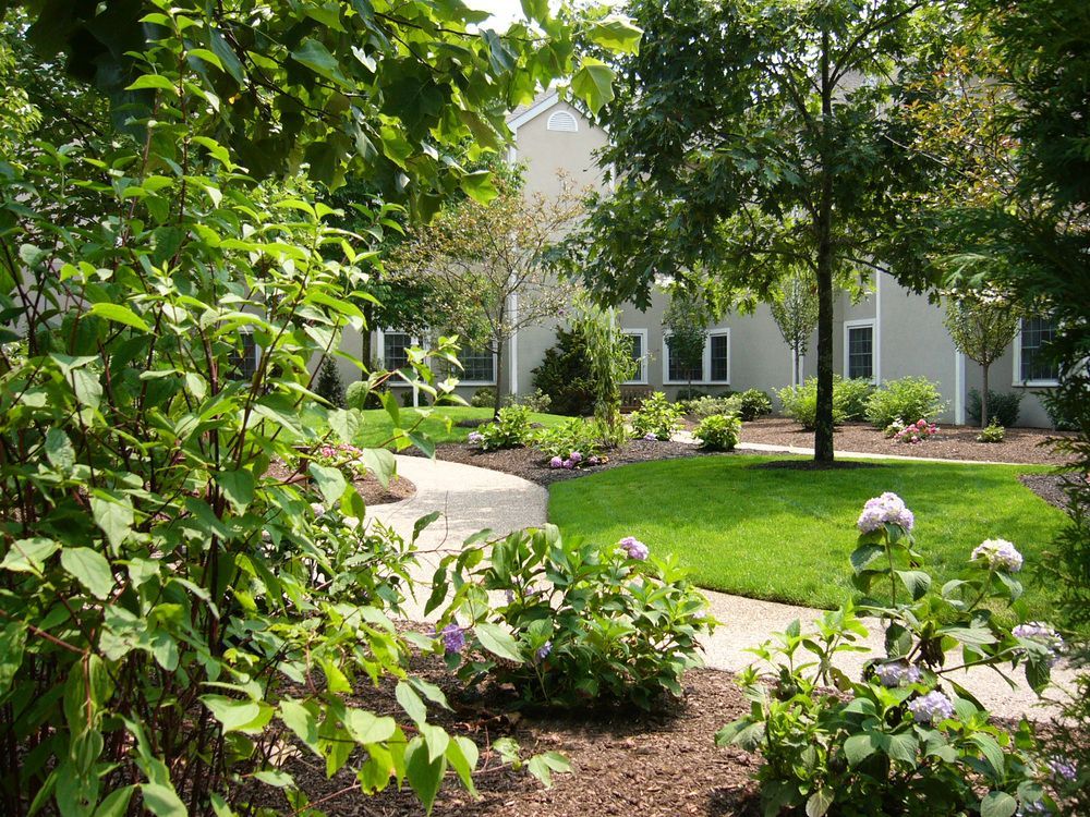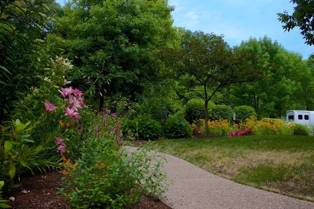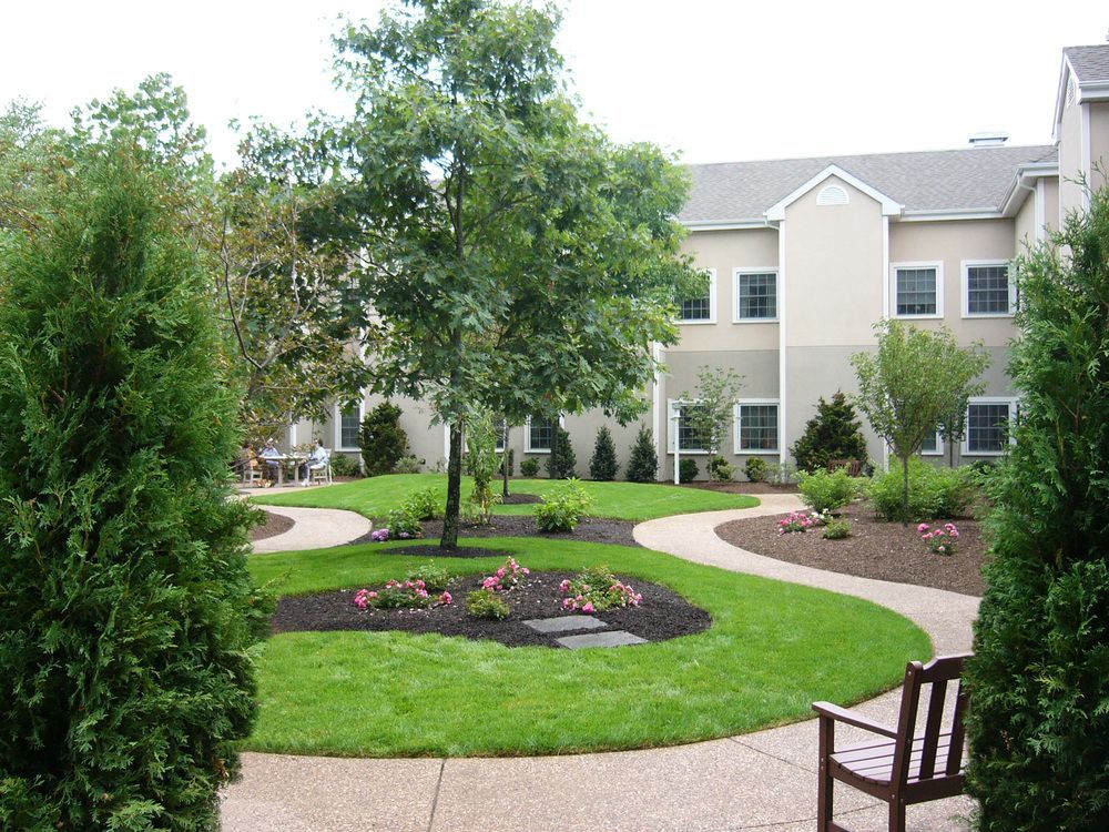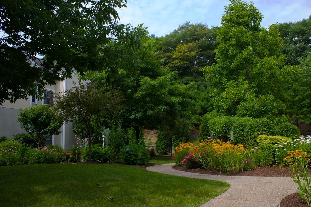 The administrative staff at Saint Elizabeth Home enlisted the services of WDA to design a sensory garden to serve as a relaxing oasis for residents and their families. Designed to provide opportunities for passive strolling, contemplation, and outdoor interaction, the garden contains two intimate spaces connected by a gentle, meandering, discovery walkway. Each space provides a lush, green setting, and offers a series of features and experiences designed to stimulate the senses. Selected features include a mounded lawn area, a bird sanctuary garden with a bird bath, bird feeders, and bird houses, and a butterfly garden with butterfly houses. Dense plantings of flowering trees, shrubs, and perennials combine with these garden features to create a colorful, aromatic setting that attract and encourage wildlife. In addition, plantings were carefully selected to provide flower and foliage colors that reinforce a sense of calm and tranquility within the garden. Along the walkway, strategically placed seating areas provide opportunities for rest and are oriented for optimal viewing of selected garden features. Edges of the garden are mounded and densely planted with deciduous and evergreen trees and shrubs to focus views into the garden and screen views of adjacent driveways and parking area. To ensure the highest levels of comfort and enjoyment for visitors, the garden is carefully designed to provide relief from the strong afternoon sun, and to maintain full accessibility and visibility.